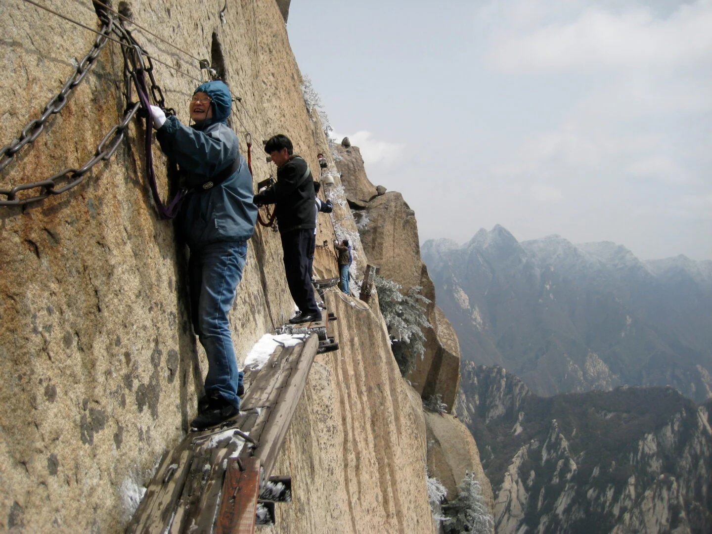 - In many stretches, there is no platform just iron stakes hammered into the cliff for footholds.
